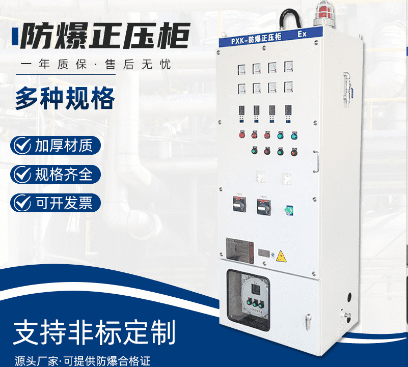 防爆正壓柜是通過箱內的智能控制系統與壓力控制系統匹配將潔凈的安全的壓縮空氣引入正壓腔,使正壓腔內形成微正壓,阻止外界危險氣體、粉塵的進入,達到防爆的目的。該產品具有只能集中控制、液晶文字顯示、自動換氣、延時自動供電、失壓補氣、故障報警及危險時自動切斷電源等功 隨著石油、化工等產業的飛速發展,正壓防爆在系統控制中的使用越來越廣泛。在爆炸性氣體危險場所里如何 正確使用正壓防爆控制器。由于電氣設備在工作時不可避免地產生電火花或形成熾熱的表面,它們一旦與現場的爆炸性氣體混合物相遇,就會導致爆炸事故的發生,直接危及用戶財產和生命安全。因此,作為使用防爆正壓柜以及正壓吹掃控制系統,它的應用早已得到客戶的普遍認可和高度重視。